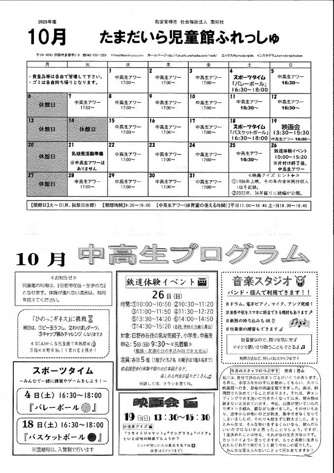 たまだいら児童館 のお知らせ・イベント
