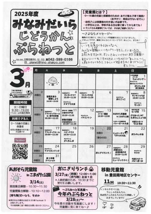 みなみだいら児童館 のお知らせ・イベント