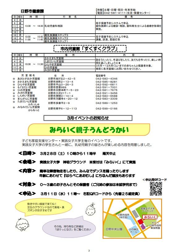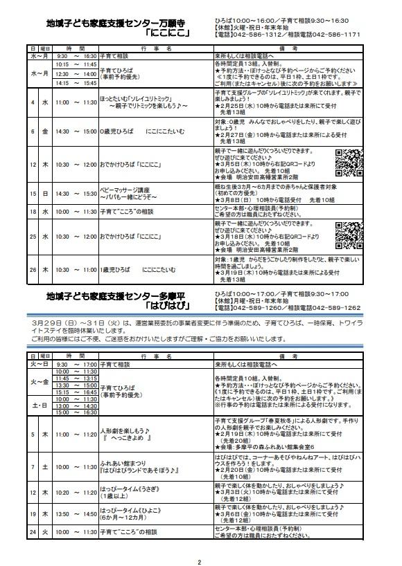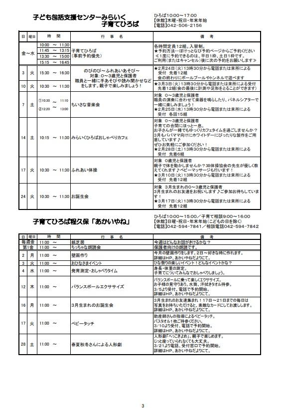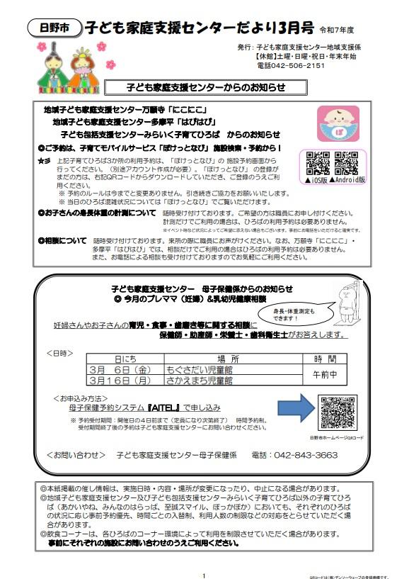 子ども保護者向けのイベント情報をまとめたセンターだよりの3月号ができあがりました。