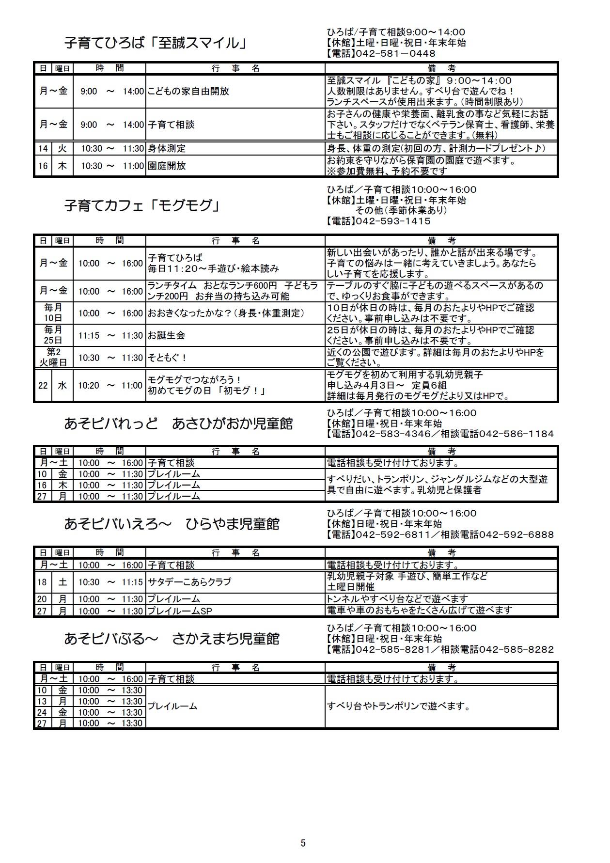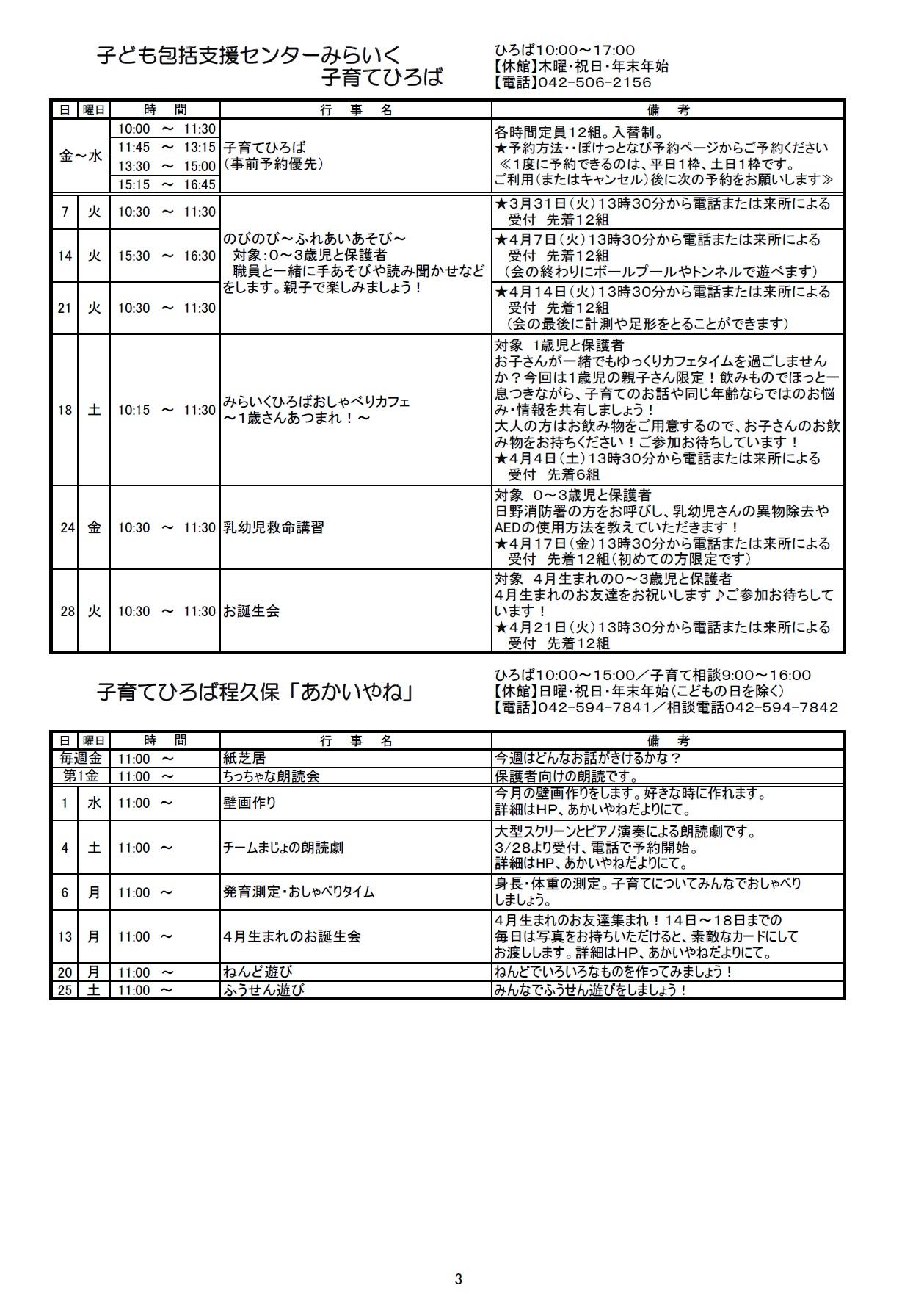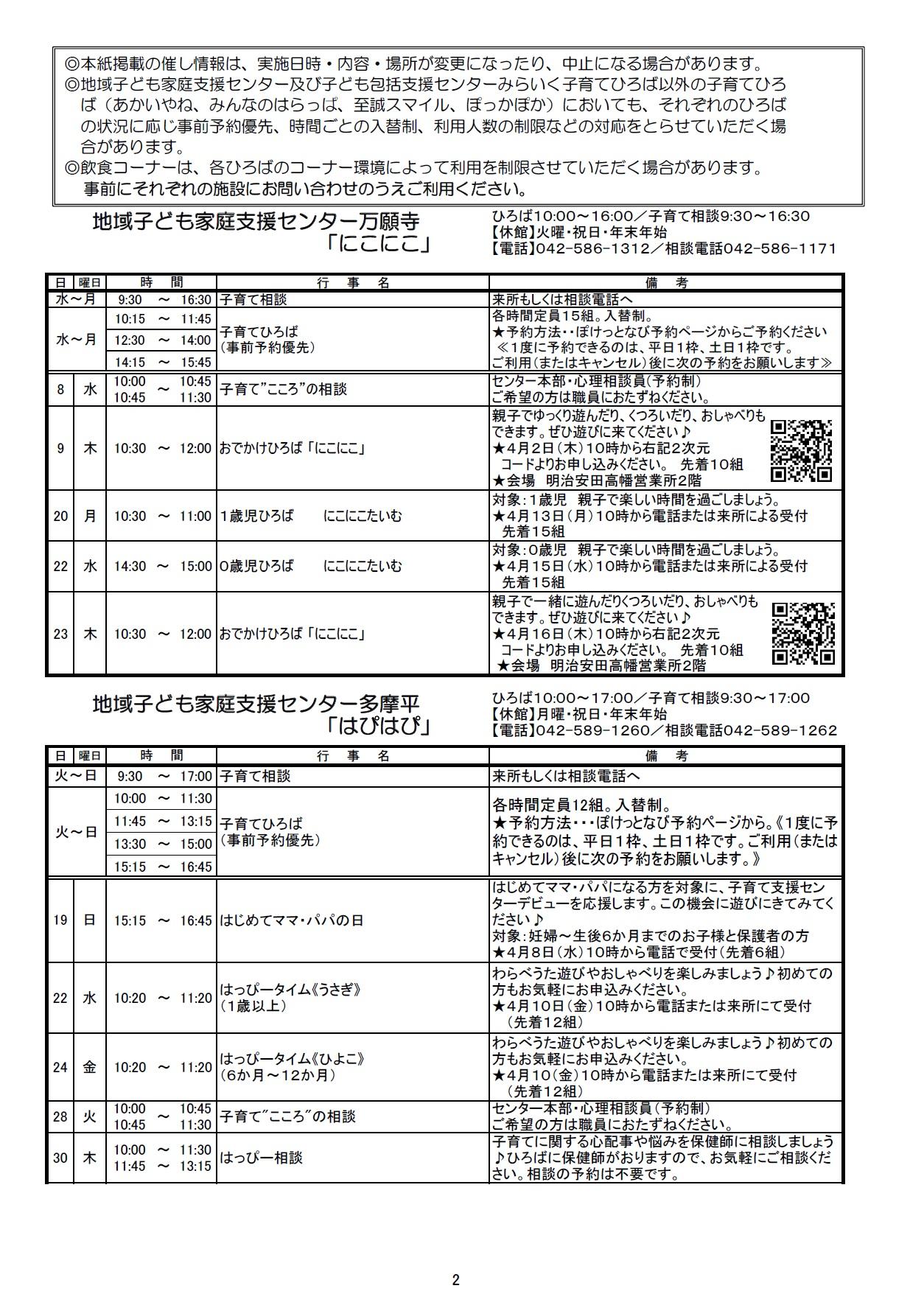 子ども保護者向けのイベント情報をまとめたセンターだよりの4月号ができあがりました。