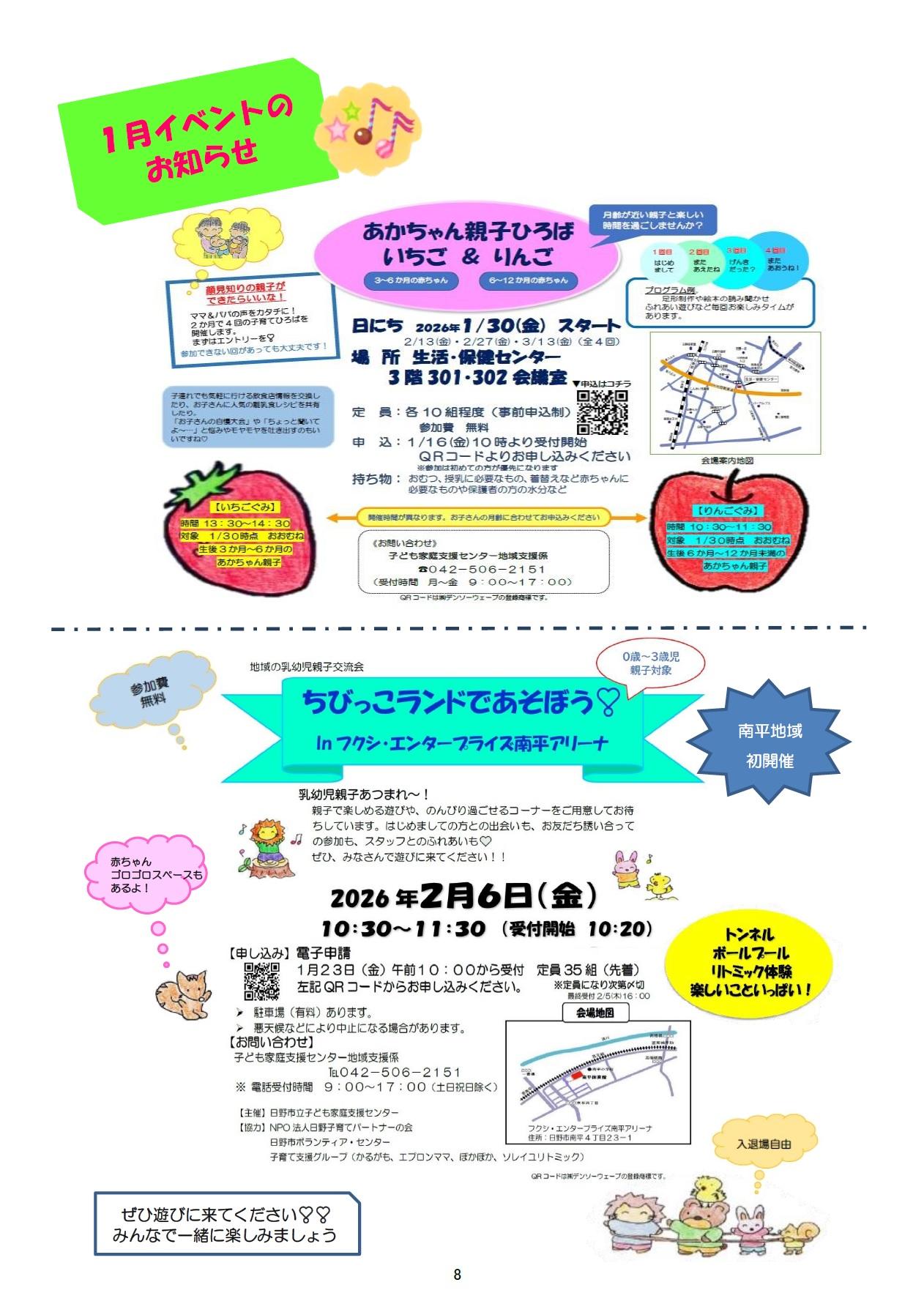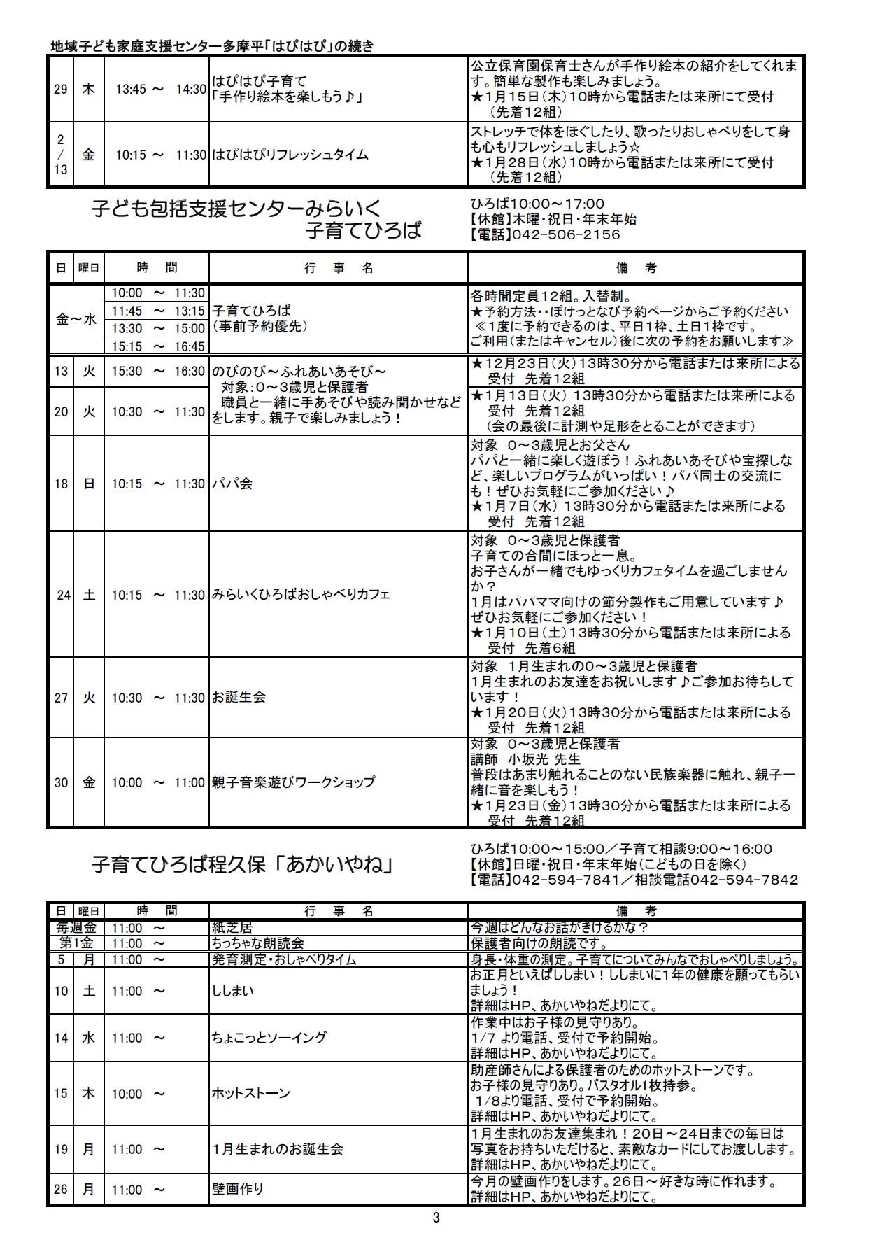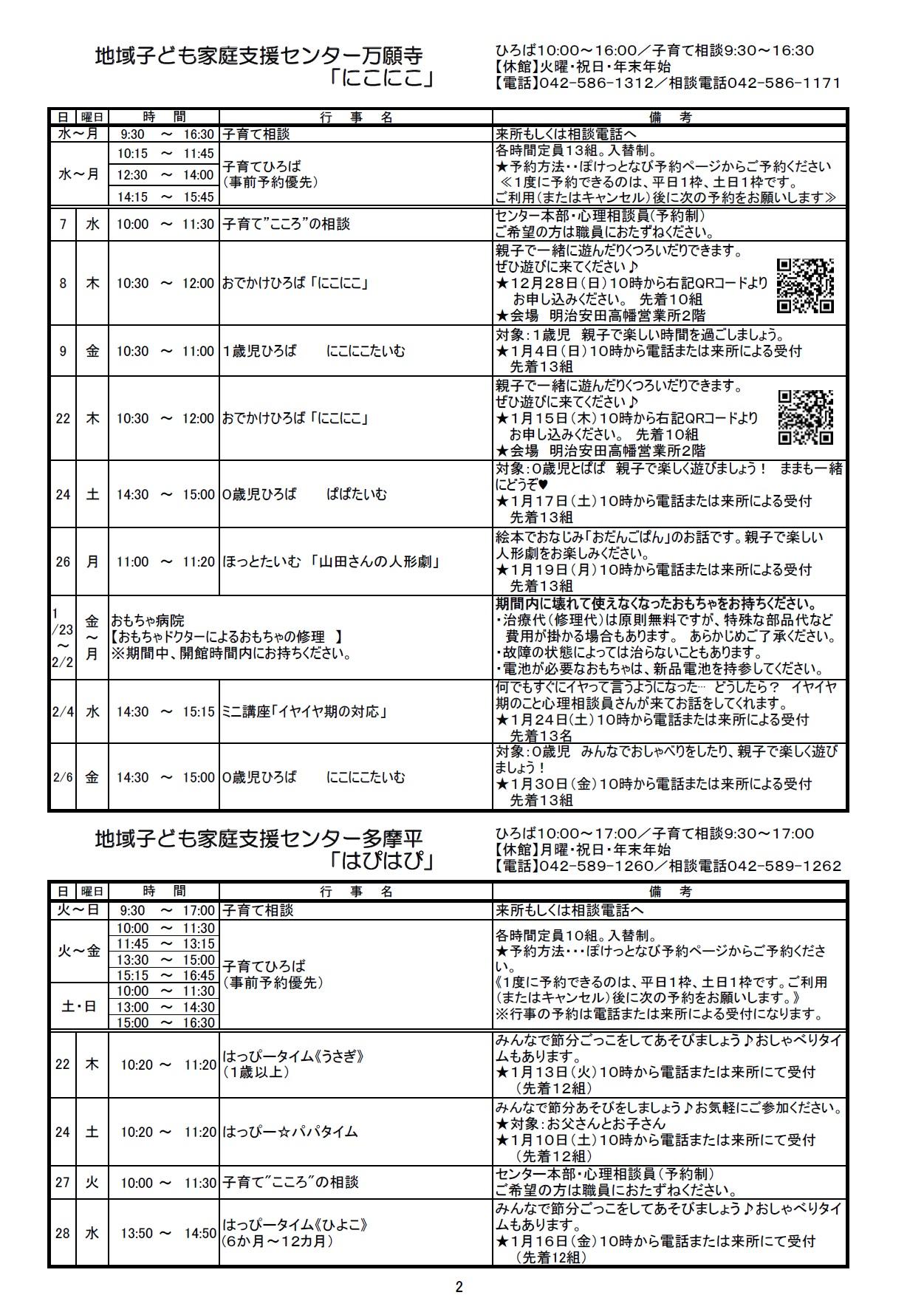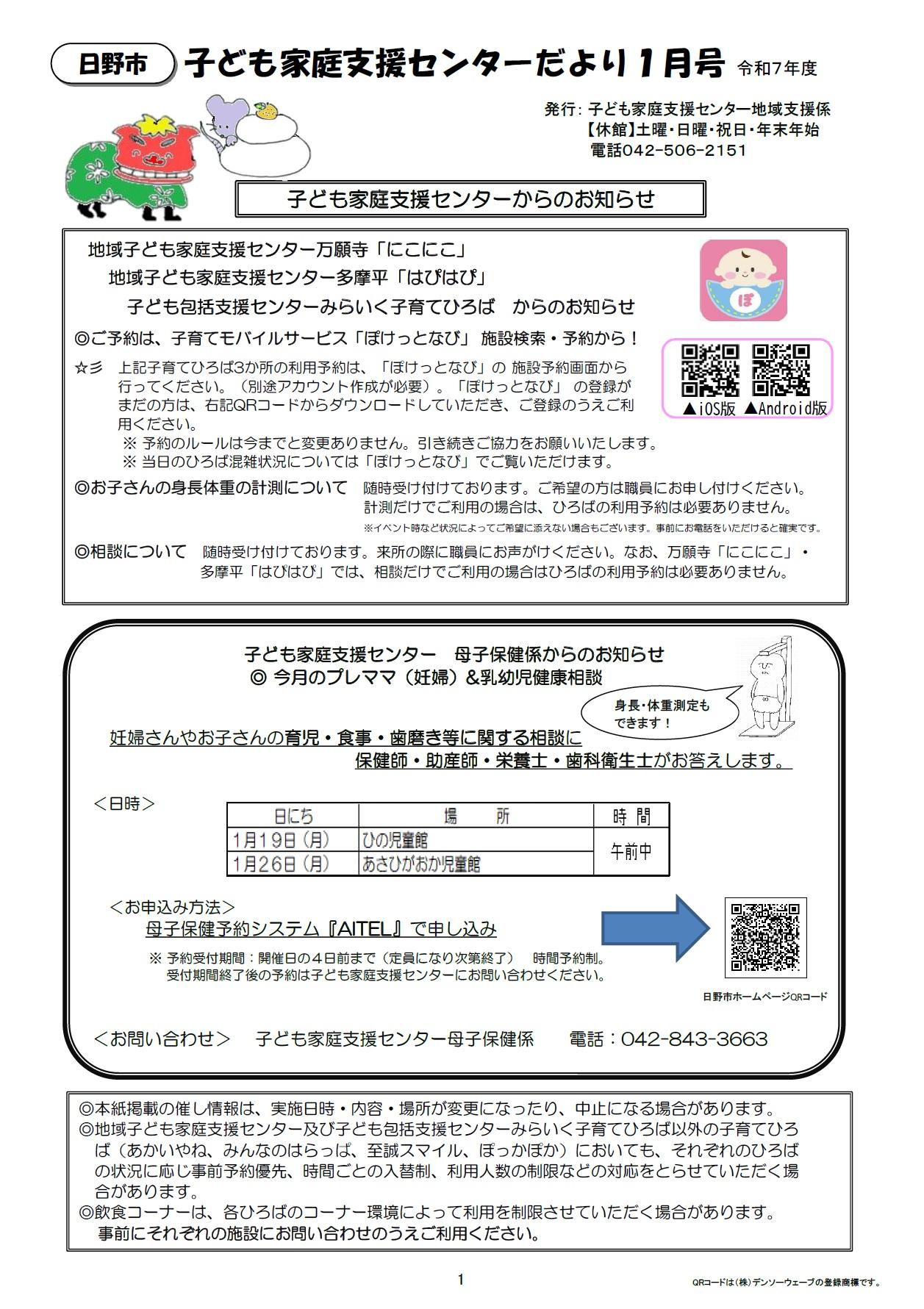 子ども保護者向けのイベント情報をまとめたセンターだよりの1月号ができあがりました。